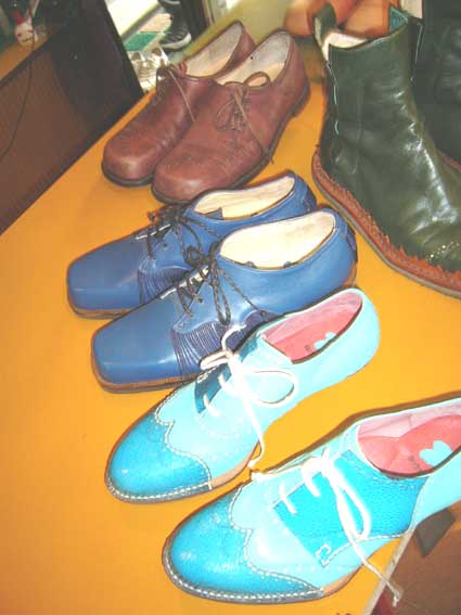 関口さん自身がデザインした靴の数々。ユニークなデザインが多いが、すべて歩き易さと履き易さを重視している