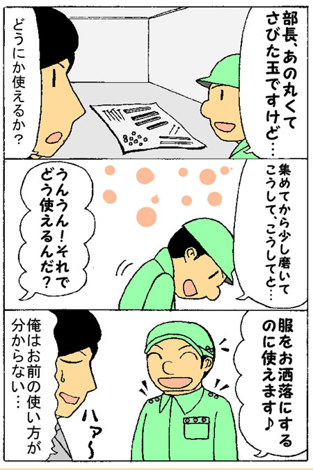 そのようにして、みんなが現物を前にしていろいろな意見を出し合っているうちに、だんだんとブレーンストーミングのようなワイワイガヤガヤ状態になって、これまでには思いつかなかった考えが生まれるのです。