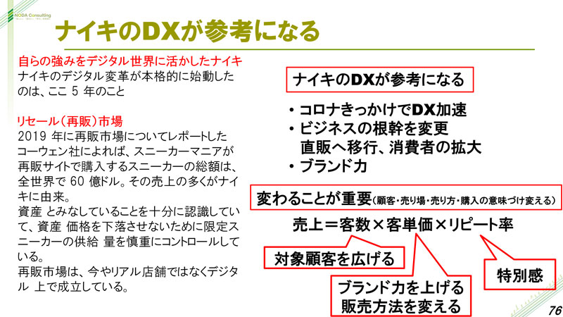これをしていくことが大切だとナイキの戦略から読み取ることができる。