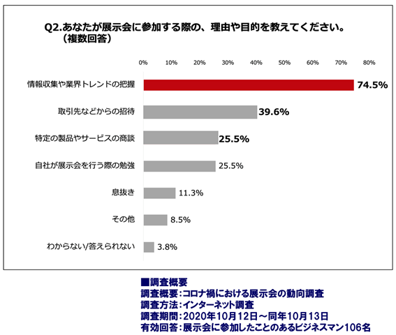 そうです。来場者は、「情報収集」のために展示会に来るのです。以下は、弊社が2020年に実施したアンケートです。