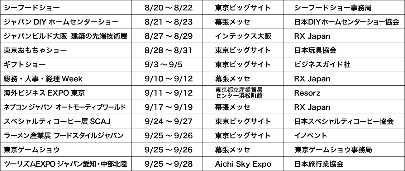 ※展示会・イベントの日程は変更することがあります。公式サイトから確認をお願いします。