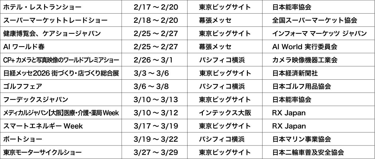 ※展示会・イベントの日程は変更することがあります。公式サイトから確認をお願いします。