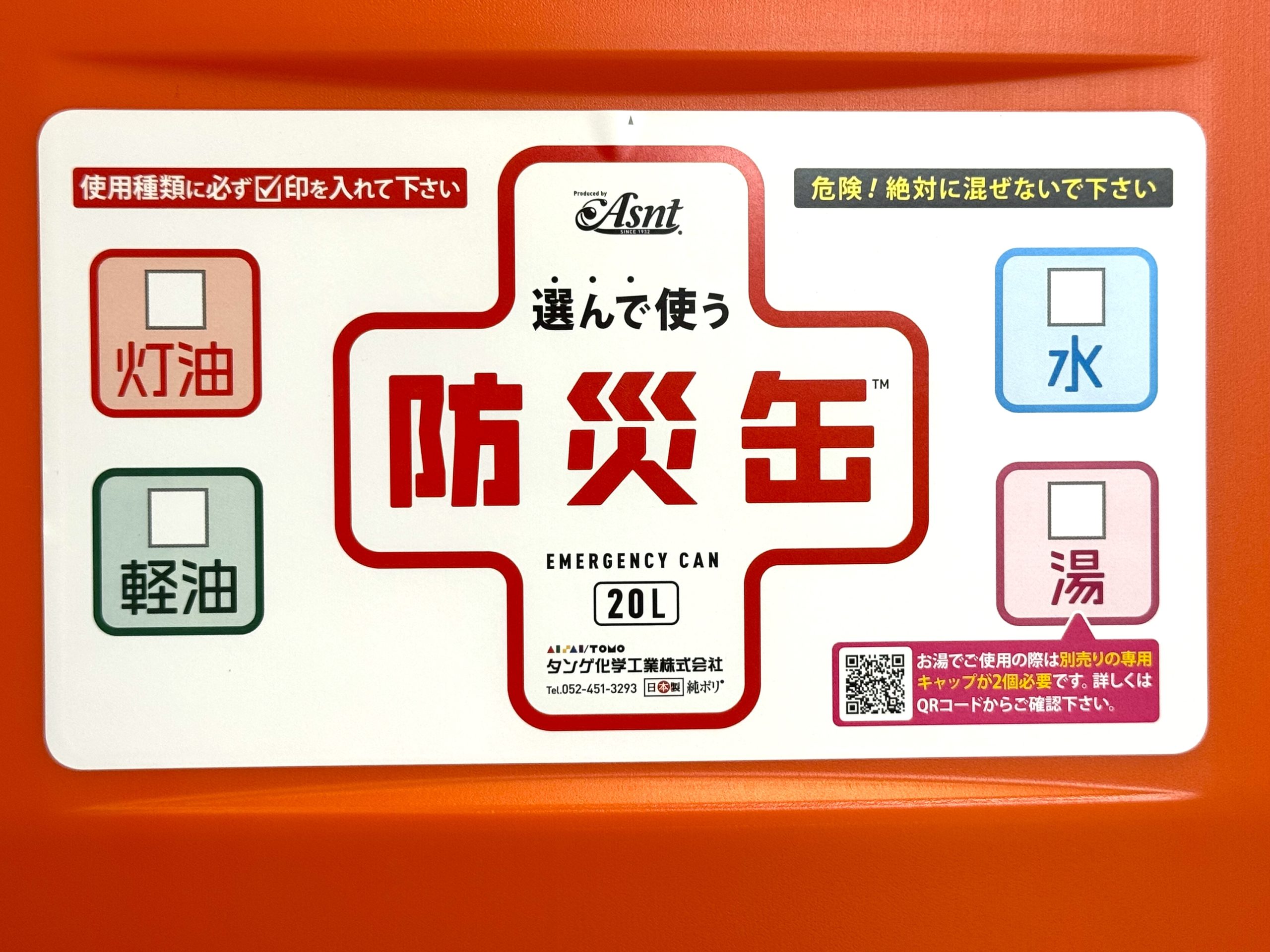 それがどうした?と感じられるかもしれませんね。すでに灯油用、軽油用、水用…とそれぞれ専用に使えるポリタンクは、当たり前のように存在しますから、4つの液体からユーザーが任意に用途を選んで使うポリタンクをあえて販売する必要があるのか、と…