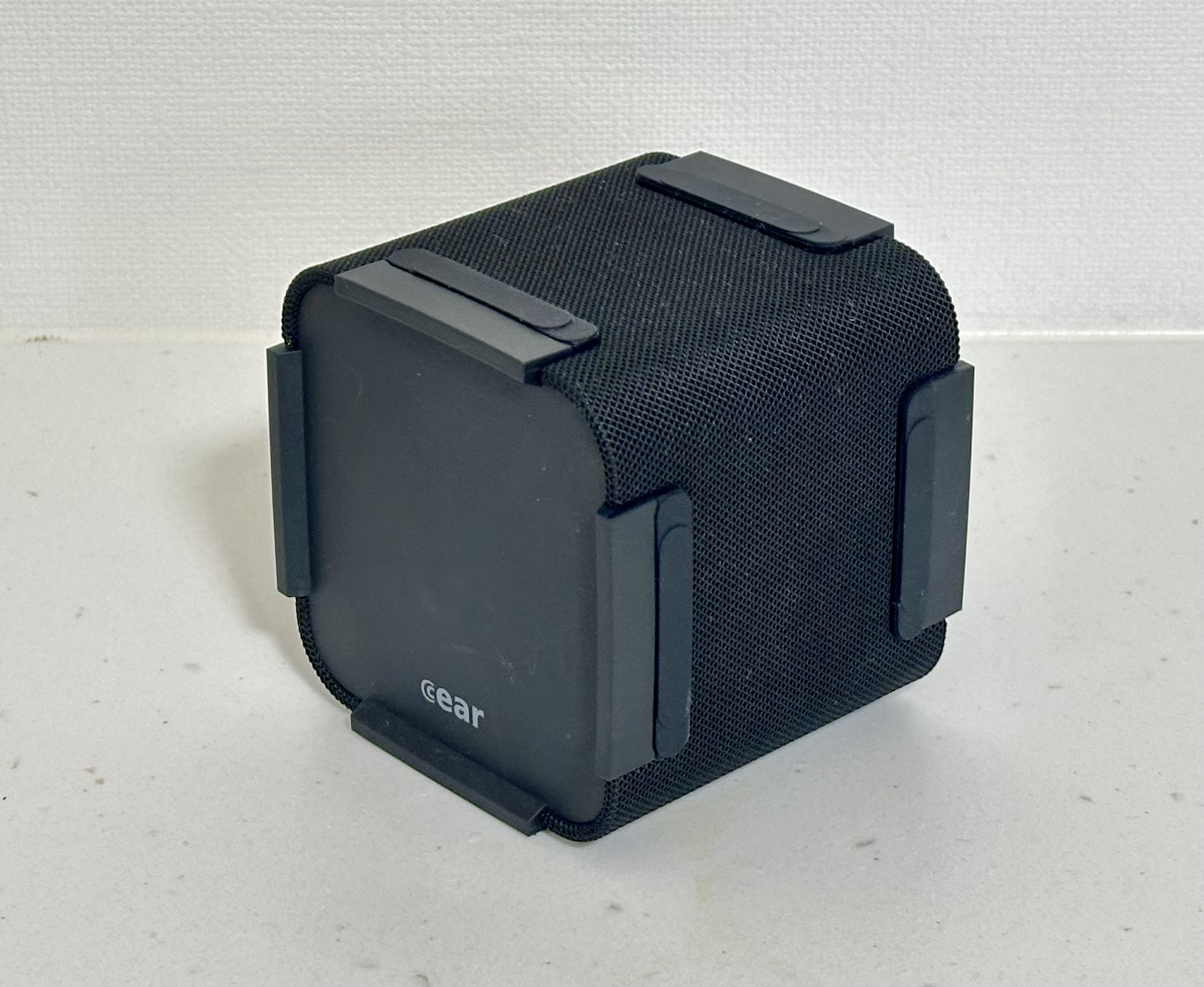 【写真】「Cear pavé」(シーイヤー パヴェ)本体。手のひらに乗るほど小さいキューブ形状のスピーカー1つで、ステレオ収録された音源を立体的に再生することを目的とした製品。