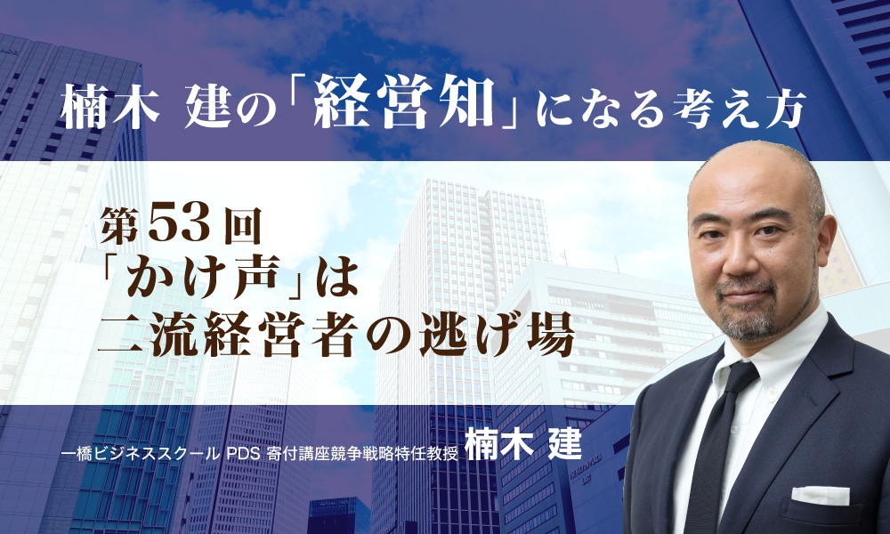 「かけ声をかける」――リーダーが絶対にやってはいけないことの一つだというのが僕の考えだ。かけ声は何の構想も戦略も実行もない人の逃げ場に他ならない。かけ声をかけているうちは二流経営者だ。