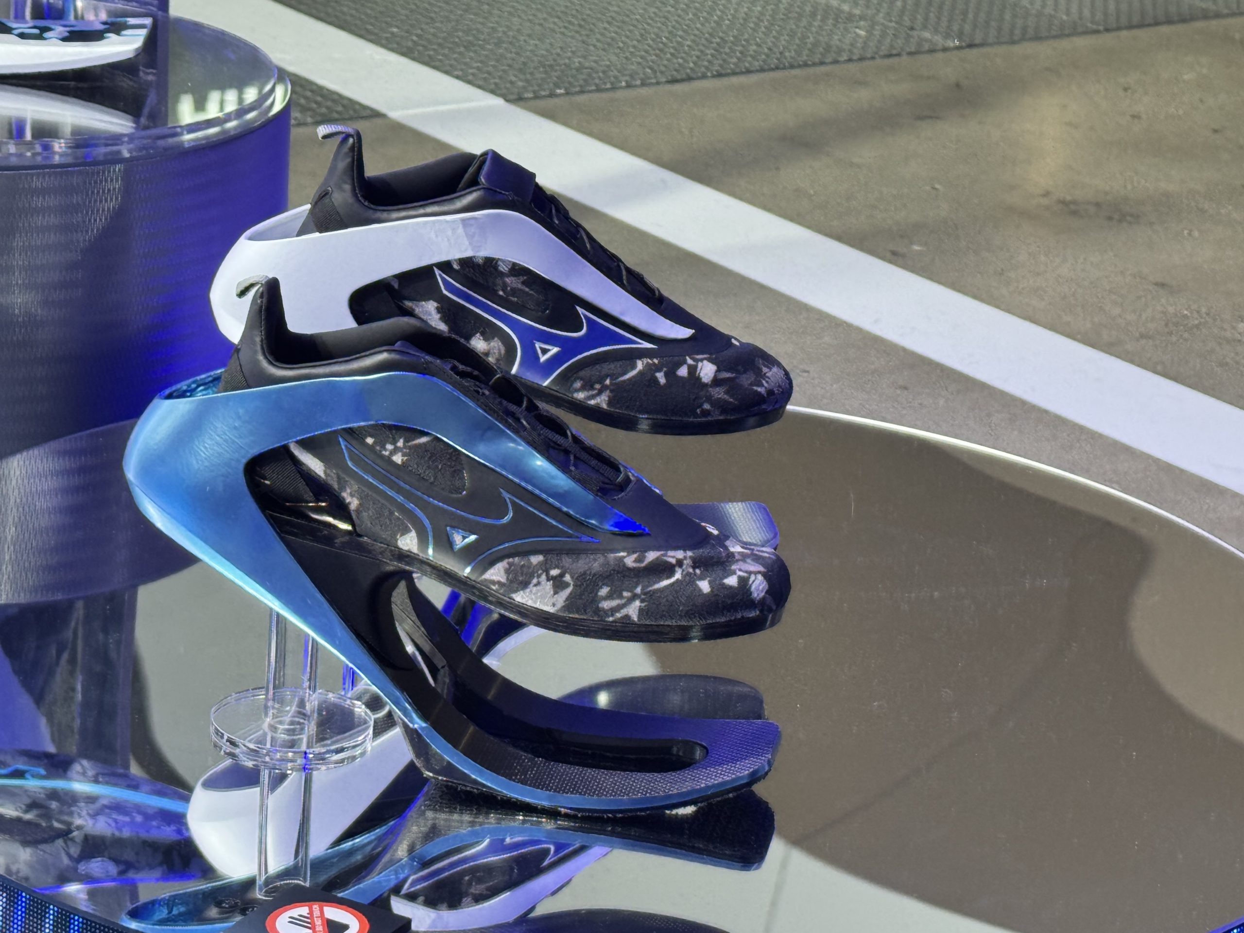 この「Tokyo Future Tour 2035」では、上の画像にある試作品もまた注目を浴びていました。これ、いわゆるジャンピングシューズです。どこが開発したかというとミズノです。