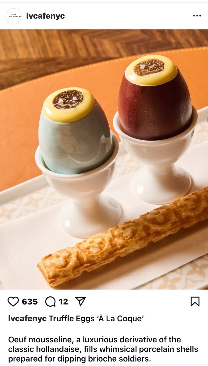 2024年11月15日、LVは五番街にあるフラッグシップストアの数年にわたる改装のため、57丁目東6番地に広大なテンポラリーストアをオープンした。同店4階に設けられた「Le Café Louis Vuitton」は、LVの文化的インスピレーションに満ちたカフェ兼ライブラリー空間として作られており、その雰囲気にゆったりと浸ることができる設計となっている。メニューには、トリュフ入り卵料理やキャビア添えのワッフルなどのシグニチャーメニューをはじめとした料理が並んでいる。