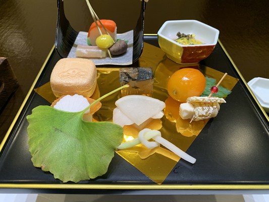 大浦牛蒡鳥鋳込み(+5)、紅葉麩、針人参、湯葉