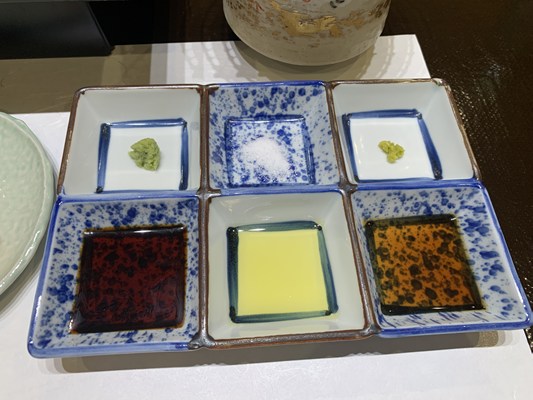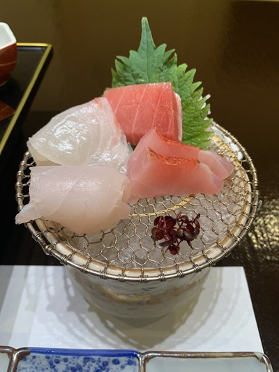 本鮪中トロ(+20+10)、金目鯛(+10+10)、目鯛、真鯛(+3)が盛り込まれて、食べ方いろいろで頼めます。