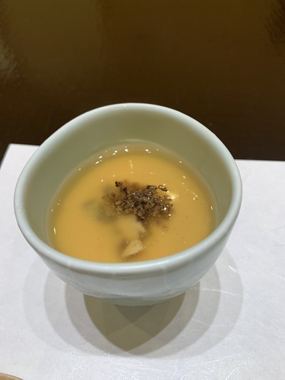 鰻とトリュフの茶碗蒸し(+5+5)、ほくほくの百合根が底から出てきます。