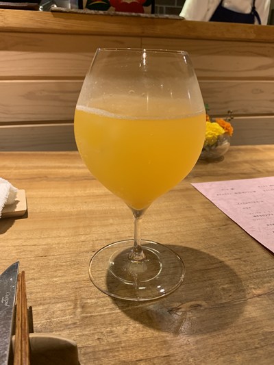本日はまた福岡に戻り羽田空港から車を運転して帰りますので、アペリティフは自家製パッションフルーツのソーダにします。これが好みの味わいで、おいしい。植木にパッションフルーツを作っている生産者がいるんですね。