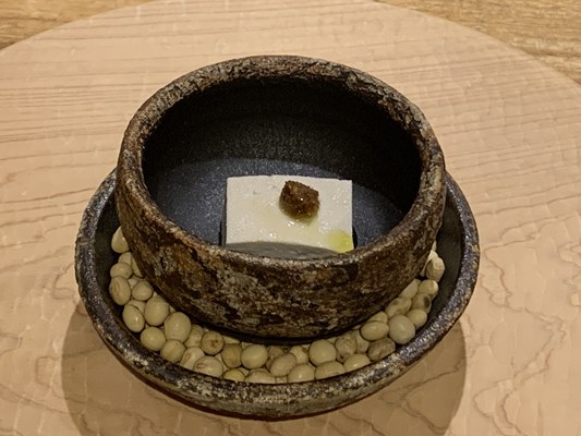 地元の食の名人、としよのお母さん直伝で、地大豆のふくゆたかを天草の塩の会のにがりで作った豆腐です。上には醤油のもろみと胡麻がのっています。来年より自家栽培大豆で作るそうですよ。