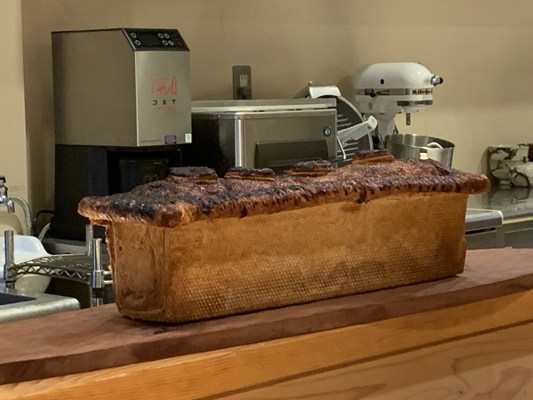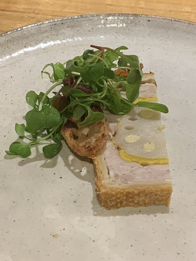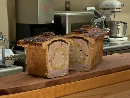 前田牧場のプリンセスポークを使ったパテアンクルートがカウンターの上に置かれました。自家製の辛子蓮根が入っているとのことです。