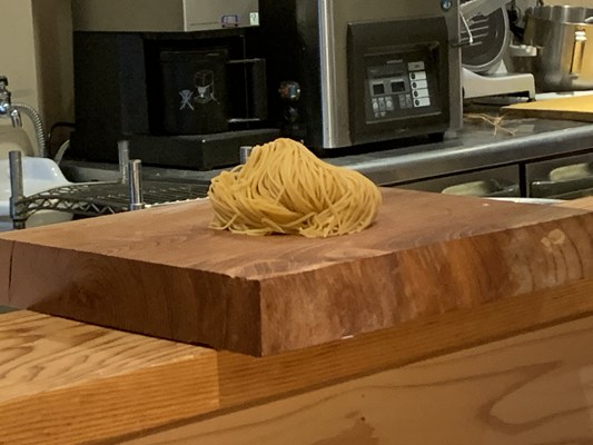 早速、この画像をInstagramにアップしたところ、感嘆のコメントをいただきました。見た目からして素晴らしい料理です。揚げた辛子蓮根添えています。本田シェフ栽培の小麦で作っています。これは美味しい!!次回は超過料金を払ってハーフカットしないサイズでお願いしたい!ですね。