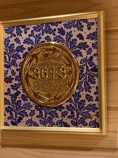 店に到着すると連れからカウンター席横に掲示しているエンブレムを指さし、これはなんですかと聞かれました。するとシェフがパンフレットを持参して説明してくれました。