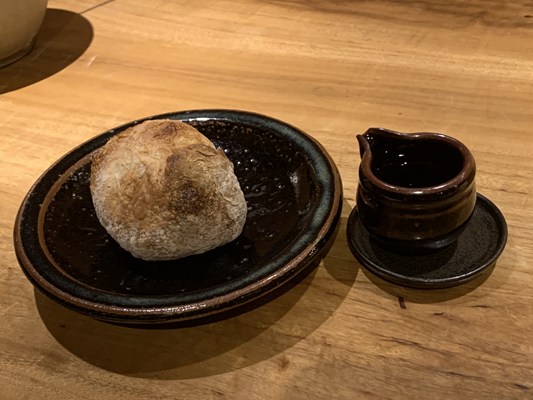 続いては、シェフ自家栽培の小麦粉で自家製パスタです。パンとオリーブ油が供せられます。
