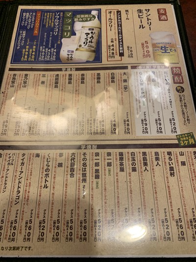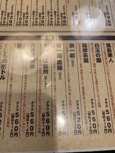 ドリンクメニューには飲んだことがない焼酎がありますね。