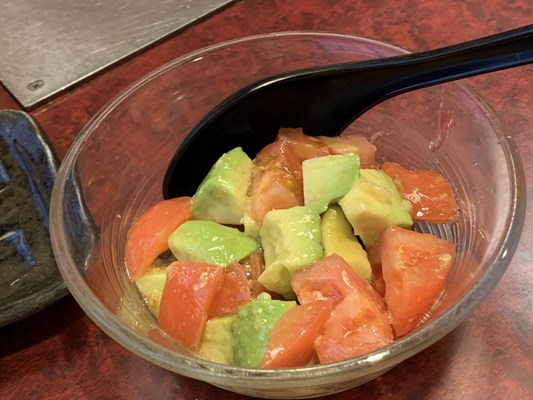 アボガドとトマトのナムルが到着です。あっさりしてなかなかおいしいです。