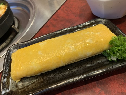 鉄板だし巻きが到着しました。きれいに巻いてあってふっくらしています。
