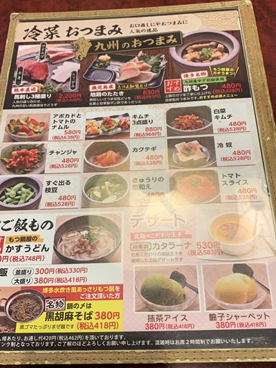 まずは、なにわホルモン鉄板焼きという鍋から。鉄鍋を使って弱火で焼いて、野菜から出てきた水分で煮込む鍋です。しばし、時間がかかるのでおつまみメニューを食べながら待ちます。