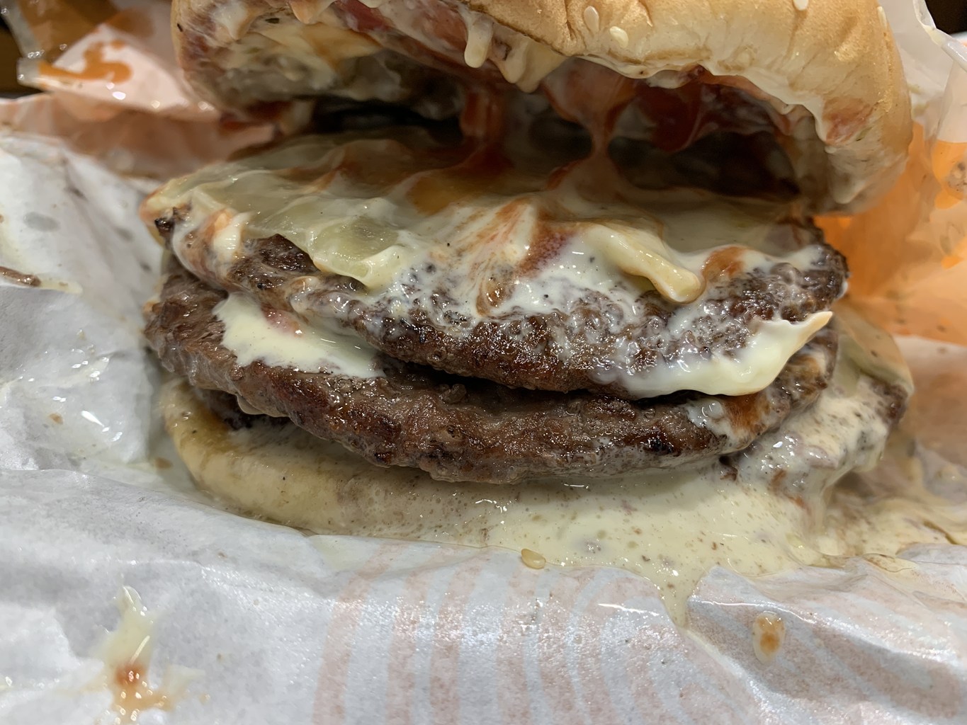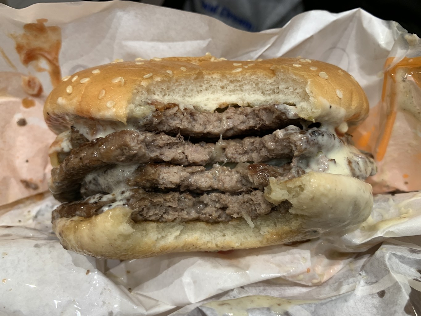パティ4枚、チーズ4枚の超ボリュームメニューです。