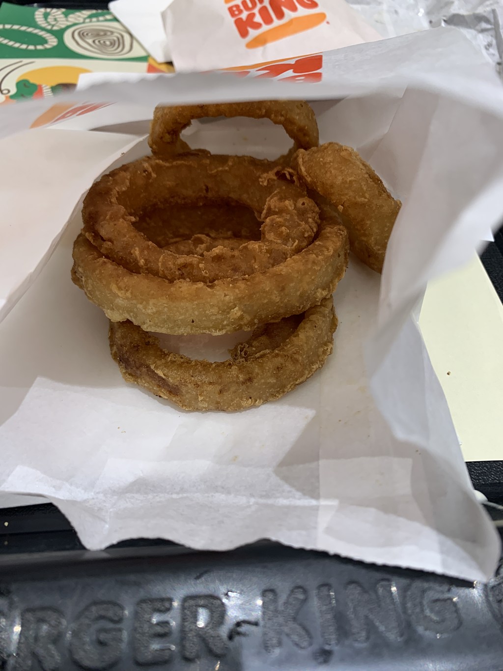 オニオンリングは衣が特徴的で、玉葱を食べたときにずる剥けしない仕様でとても良いです。