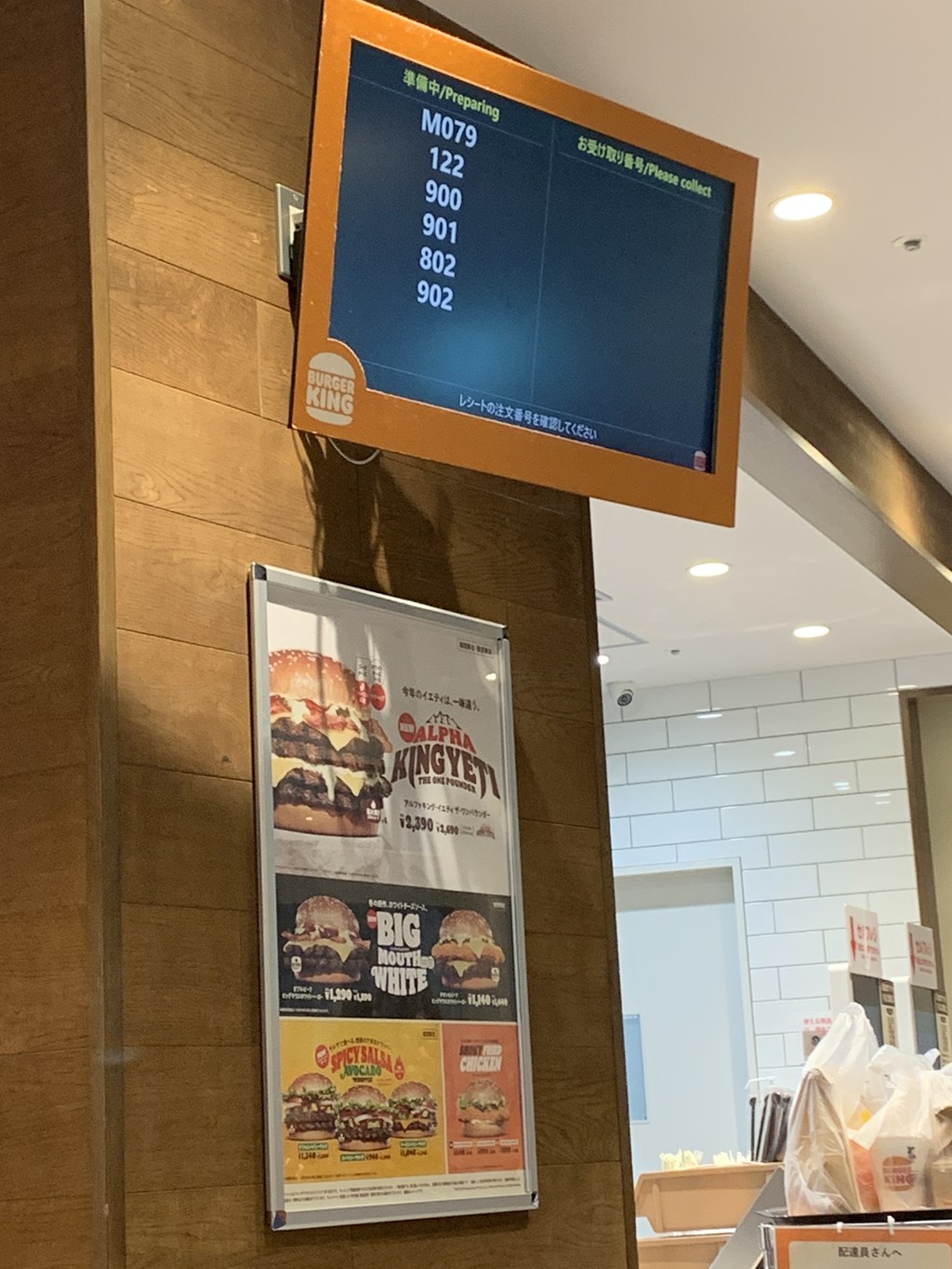 出来上がるカウンター横のモニターが案内してくれます。
