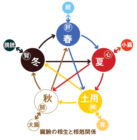 ●相剋の関係: →の向きに「勢いを止める」関係。
