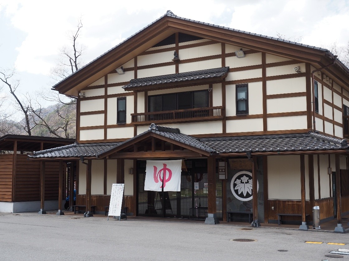 ダム建設が進み、2014年6月に王湯が閉鎖されると、吾妻川の南側の高台に移転した新しい温泉街に新生・大湯がオープンした。同年7月のことだ。真新しい2階建ての建物の正面には、やはり源氏の紋所「笹竜胆」が掲げられている。建物は新しくなったが、旧王湯の名残を感じさせる外観だ。