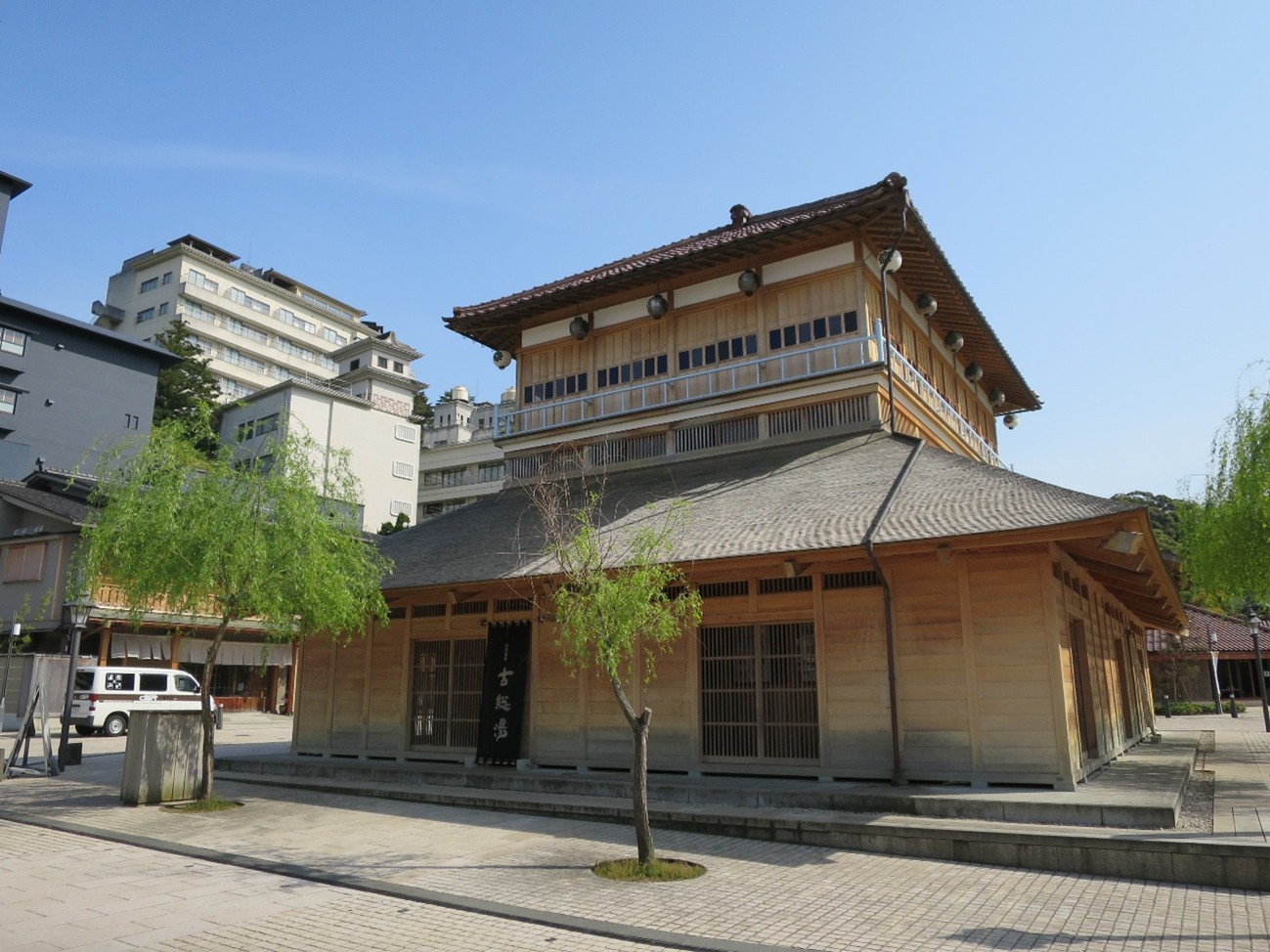 だが、2010年にコンクリートの共同浴場は建て直され、「古総湯」として生まれ変わった。古総湯は明治時代の総湯(共同浴場)を復元したもので、杮葺きの屋根が印象的な2階建ての木造建築である。