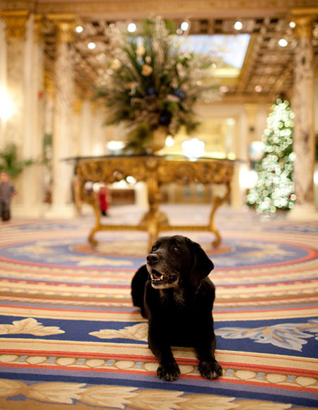 するとニューヨークで盲導犬になる訓練を受けていた雌のラブラドール・レトリバーが軽い視覚障がいがあることがわかり、盲導犬になれなくなったことを知る。そこでこの犬を同ホテルが引取り、「接客犬」として採用するという英断を下し、その名をケイティと名付ける。ケイティの仕事は、ホテルのロビーを訪れるゲストたちを幸せな気持ちにさせ、歓迎することだ。