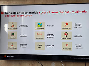 MistralのAIは最初から技術内容を公開する「オープンソース」としているため、各企業向けにカスタマイズがしやすい点も挙げていた。