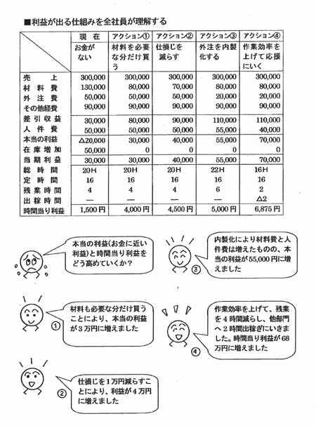 ・・・作業効率を上げて他部門へ応援に行き、時間当り利益が、当初の1,500円から、